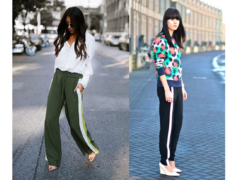 運動元素融入日常穿搭很帥氣,卻不等於真的穿運動褲出門就是時尚,聰明選擇軟質寬褲側邊綴有運動感強烈的線條突顯休閒感,或是選擇雪紡材質的運動款式上衣,利用款式與材質對比的mix,就是正流行休閒時尚風格。