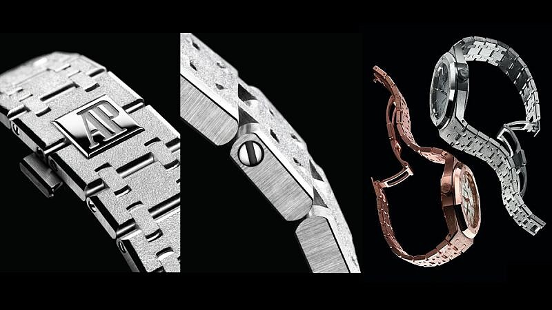 具有錘擊精修效果的18K金鍊帶搭配AP字樣折疊扣錶帶,結合古老珠寶技術與製錶工藝,同時也延續了錶帶原有的靈活性,讓經典換上新裝轉化重生,增添耀眼光燦。