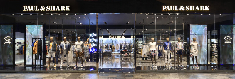 Paul&Shark全球首間全新概念旗艦店佔地超過200平方米,店鋪以現代化的簡約線條為主要設計概念,裝潢以銀、白及深藍色作為主調,揉合傳統及創新元素,保留了一直沿用的木材裝飾,卻巧妙地漆上代表品牌的深藍色,在保留經典傳統之餘披上一抹充滿時尚感的風格。