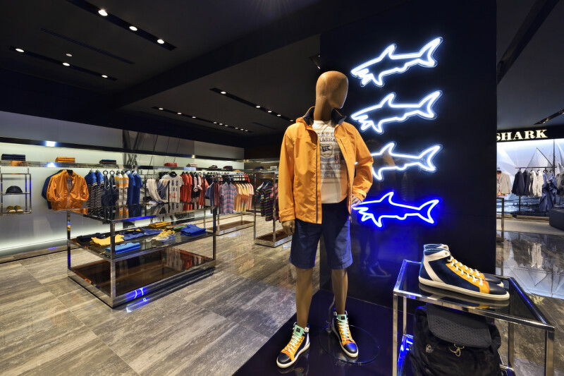 同時店舖增添了許多閃亮的鋼製裝飾,並配上金屬、大理石、玻璃、木材以及霓虹光管,時髦明亮的環境完美呈現Paul&Shark與時並進的優雅時尚品味。