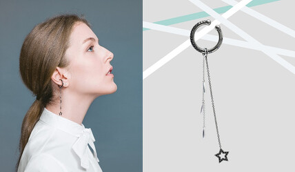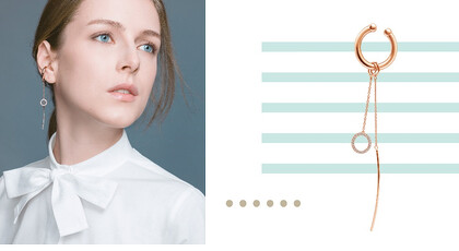 點睛品全新推出的Ear Play「耳玩」系列,打破傳統的單一造型,以Ear Cuffs耳骨夾作為設計上的延伸,並推出鑲鑽的白金與黑金,和素面的玫瑰金三色。妳可以把開口式的圈環直接勾在耳廓上,或是混搭上各式垂墜吊飾,要簡約優雅、俏皮甜美、或是都會摩登,任何季節,任何場合也都適用,是好玩又時髦的聰明設計。而且,別忘了,開口式的耳骨夾就算是沒有耳洞,妳也能輕鬆穿戴!