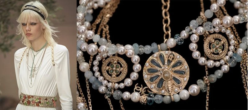 各種飾品的自由混搭,同樣也是表現 Chanel 精神的一大重點。月桂葉、珍珠、寶石,從 Choker、誇張項鍊、氣勢手鐲、手套到臂環,混搭出屬於自己的組合,才是展現創意的造型重點。