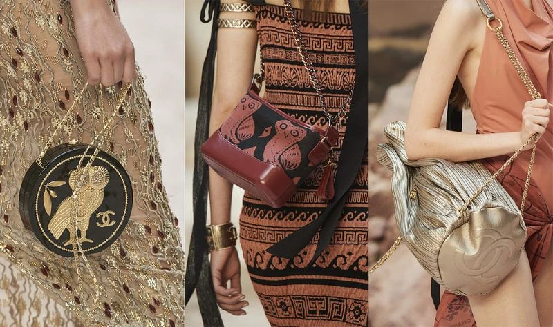 在每一季的大秀上,卡爾總不忘運用許多包款配件來展現他的幽默感。在2018早春度假系列當中,除了象徵智慧的貓頭鷹包非常吸睛,另外宛如戰士箭筒的束口袋,或是換上古典圖騰的 Gabrielle de Chanel 包,都是值得關注的趣味單品。