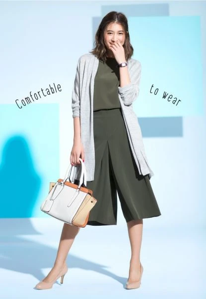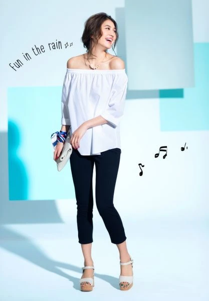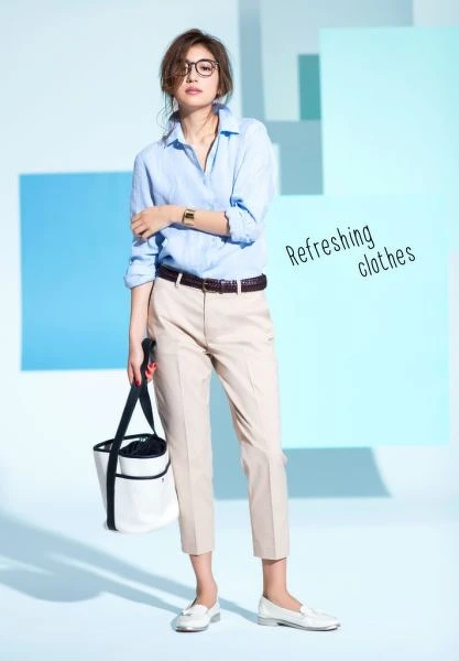 面對雨天的悶熱,可選擇亞麻材質打造的襯衫,搭配可修飾腿型的DRY材質的褲子,打造清新、幹練的女性魅力。