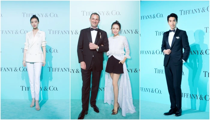 倪妮以一身純白西裝搭配Tiffany黑色尖晶石和長形鑽石鑲嵌鑽戒、Tiffany鉑金鑲嵌藍寶石、鑽石、月光石蝴蝶胸針和Tiffany高級珠寶鉑金鑲鑽耳環,展現自信俐落的女性魅力。身穿帥氣黑色西裝的趙又廷,佩戴Tiffany & Co.大象危機基金會18K白金鑲鑽特別款胸針、Tiffany East West系列腕錶和Tiffany T Square 18K玫瑰金手鐲出席盛典。章子怡選擇Tiffany Blue Book海之博韻系列戒指和Tiffany 鑽石流蘇耳環優雅亮相。