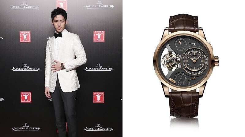 積家品牌摯友井柏然配戴Duometre Spherotourbillon 雙翼立體雙軸陀飛輪腕錶,錶盤左邊顯現的機芯與右邊優雅的羅馬數字時刻結合,充滿優雅氣度與卓越複雜功能的“Dual-Wing”雙翼設計,讓兩組獨立裝置共享同一個動力調校機制,也巧妙展現男人的雙向魅力。