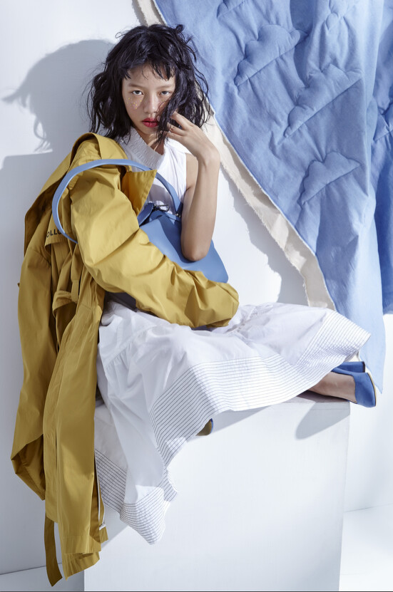 透膚上衣和手拿包的雲朵邊緣,反覆的曲線弧度宛如均勻起伏的呼吸聲般催人入夢。