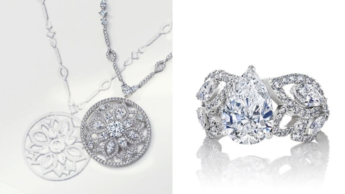 FLOURISHING以正午烈日下的完美蓮花姿態展現,每片花瓣都對稱地綻放著,加上De Beers標誌性的密釘微鑲鑽石技術,把玩好的整朵蓮花以梨形、公主形車工和圓形明亮式鑽石切割出的墜鍊、胸針最適合。