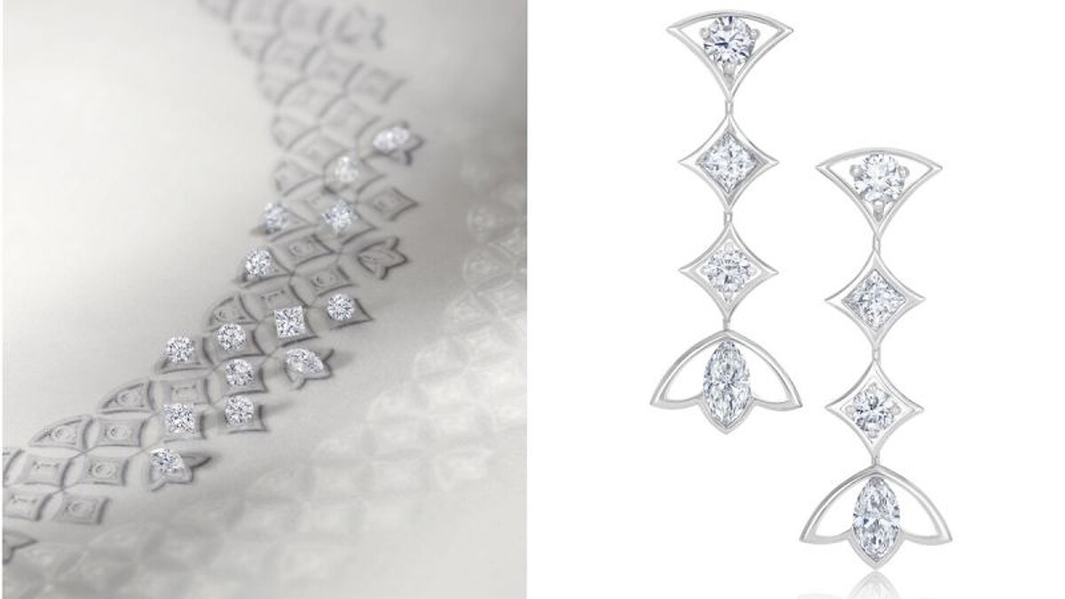 BLOOMING以蓮花花蕾初露日光,隨即打開的花瓣綻放其中,運用立體鑽石蓮花圖案作為主要圖騰,欖尖形與長方形車工鑽石便是構成蓮花輪廓的重要配角。