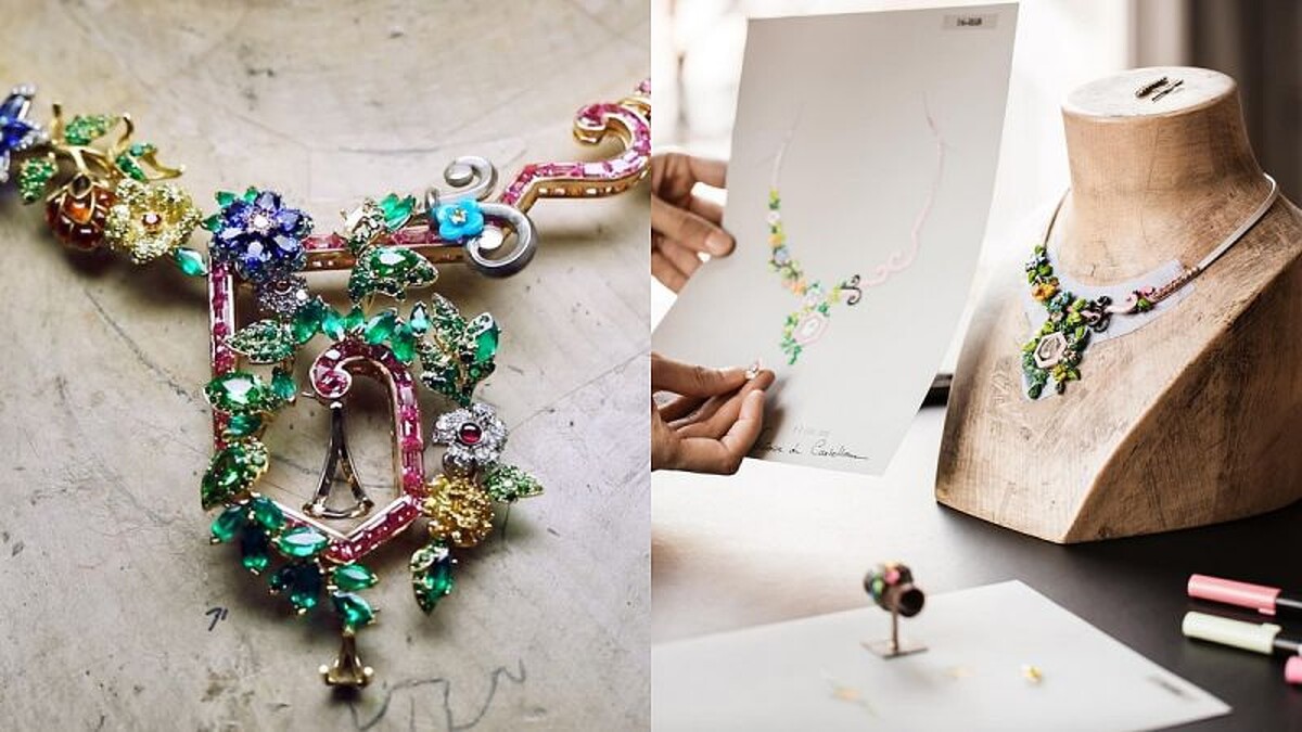 精雕細琢的建築細節、生意盎然的花草世界,Victoire de Castellane將花園中每個耐人尋味的縱跡都設為一個設計主軸的起點。像是一顆寶石的切割也許來自於黃楊樹那經過精心修剪的完美形體; 亦或是融合了法式和英式的造景風格,以幾何圖形出發,輔以流動的輪廓,在大量的珍貴寶石鑲嵌下創造出別於一番的凡爾賽雙面情調。
