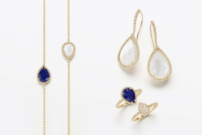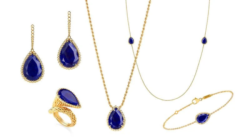 藍、白色系組合在夏天最受到歡迎,小編最近深深迷上的藍,是2017年度流行色座上嘉賓的青金石色,比寶藍色更為沉穩深邃,搶眼之餘卻又給人一種智慧冷靜的知性美,Serpent Bohème的青金石系列再從中添加以水滴造型、扭結鍊條搭配鮮明對比黃K金的藝術之美,完美多面向切割更使得青金石面貌超乎期待的使人驚豔。