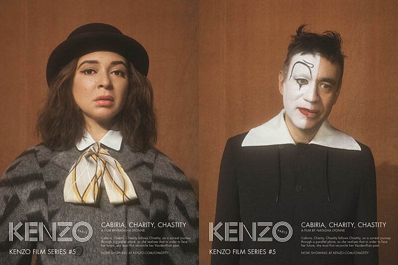 KENZO這季秋冬大片不改古靈精怪的風格,這次以電影《Cabiria, Charity, Chastity》中的角色為主要題材,敘述著主角Chastity為了讓生活更圓滿,學會與過去妥協,以無厘頭的方式表現出這個超現實、非正義且晦暗難解的世界。而簡約的幾何圖形印花、領型的設計剪裁與針織材質的服裝系列,也表現出看似簡單的表面背後,帶著現實無法妥協的荒誕情節。