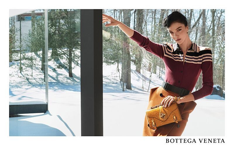 初雪搭配美景,對映大片落地窗環繞的房間與長廊,這樣的壯觀景緻襯托出穿在Eva Herzigova、Mariacarla Boscono、Grace Chen與 Simon Nessman身上剪裁細膩、大地色系的服裝。創意總監Tomas Maier也說到攝影師Todd Hido運用光線的手法,巧妙營造出與拍攝主體間的連結和距離,增加了模特兒、服飾與建築展現出的層次感。