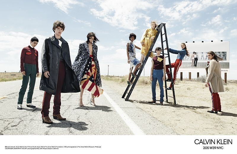 由Raf Simons入主CALVIN KLEIN後,所執導的第一個205W39NYC系列廣告形象終於釋出!以美國加州沙漠裡的白色大型看板為背景貫穿全系列,而看板上正是前一季CALVIN KLEIN 以經典美國(American Classics)為主題的形象廣告,其中也包括了藝術家安迪·沃荷(Andy Warhol)的作品,展現將高級時裝世界巧妙地結合在現實日常生活的意象。樂儀隊制服、塑料外層大衣、強悍俐落的正裝剪裁、仿古手工拼布、工作服和西部丹寧服裝...等展現了多元的混搭風格,首次呈現的CALVIN KLEIN JEANS ESTABLISHED 1978丹寧系列單品,也將在CALVIN KLEIN 205W39NYC專門店推出。