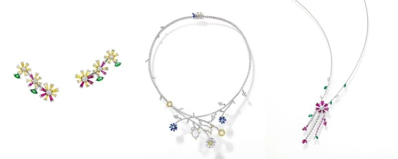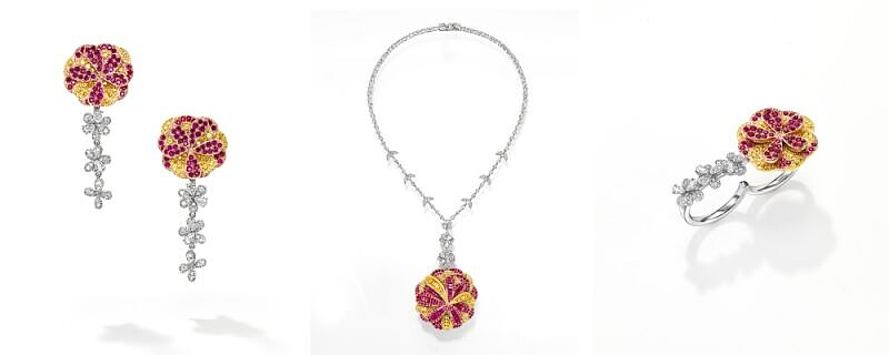 Opulence系列以平面設計描述著花朵盛放的美麗,是一款充滿現代感的珠寶。設計上以鑽石來呈現花瓣的柔美姿態,而彩色寶石用以展現葉子的形態,透過鑽石與珠寶的不同切割法,勾勒出澄澈的靈動美感!