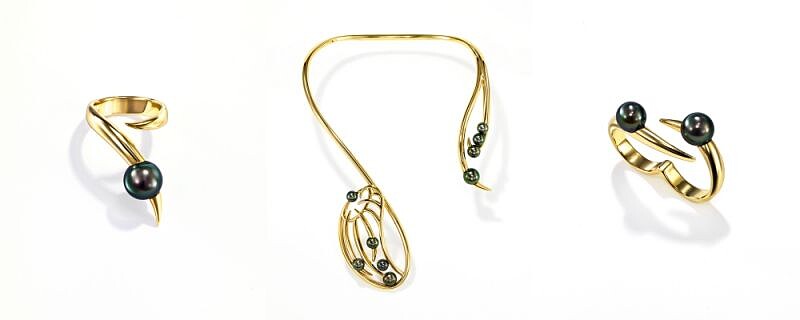 以黃金與充滿異國風情的南洋黑珍珠勾勒出忘憂草那神祕迷人的魅力,而流暢動人的線條則彰顯出食蟲植物獨特的圓筒形花瓣輪廓,使項鍊與戒指能完美貼服於肌膚,甚至襯托出女性嬌嫩的脖頸與手指!