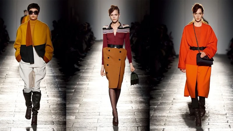 今年秋冬系列日裝部分延續了春夏的輕盈材質與繽紛色彩,選了明亮的大地色系,如淺褐色、焦橙色、竺葵紅、東方紅與酒紅色,搭配上中性的粉彩和金屬色系來突顯其質感