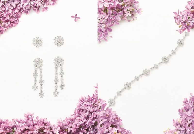海瑞溫斯頓全新推出的勿忘我花卉系列,透過鑽石璀璨光耀與細膩的輪廓,勾勒出永恆愛戀的花語意涵,同時藉由溫斯頓花園裡綻放的瑰麗花朵,詮釋女人如花般的婀娜嫵媚與優雅意象。