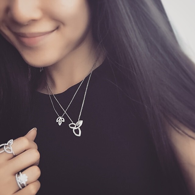 自然界的藝術曲線,在頸間、指環、纖髮與盈盈手腕上勾勒出花與葉的弧形,迷人高雅而不炫華,耳畔法國香頌佐以骨瓷上的可頌,配上黑咖啡啟動慵懶的一天,Lily Cluster珠寶系列以不對稱的葉瓣線條將馬眼型、水滴型鑽石巧妙排列,線條簡約卻活潑靈動,圓弧型項鍊可以修飾亞洲人臉型,短項鍊款修飾搭配輕巧的貼耳式百合耳環,將視線全集中在晨間的迷人臉龐。