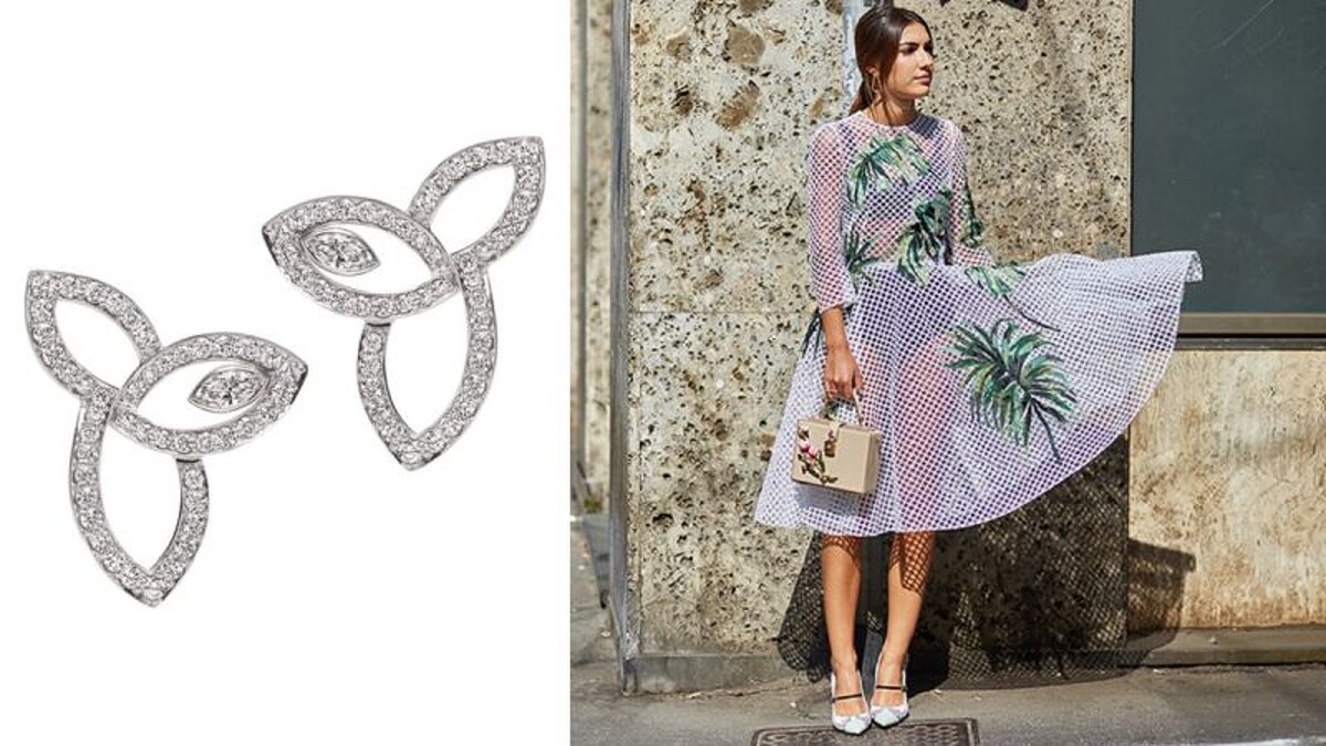 細細凝視,Lotus Cluster獨特而立體的花型絢爛呈現,猶如奪目的視覺盛宴,能將時尚造型點綴出高端的知性,愈簡單的穿搭愈能突顯珠鑽的複雜設計,並在簡單中創造一些「衝突」美感,例如清爽白色上衣搭配牛仔褲,讓懷舊感突顯鑽石單品的優雅,就是極為出色的搭配。