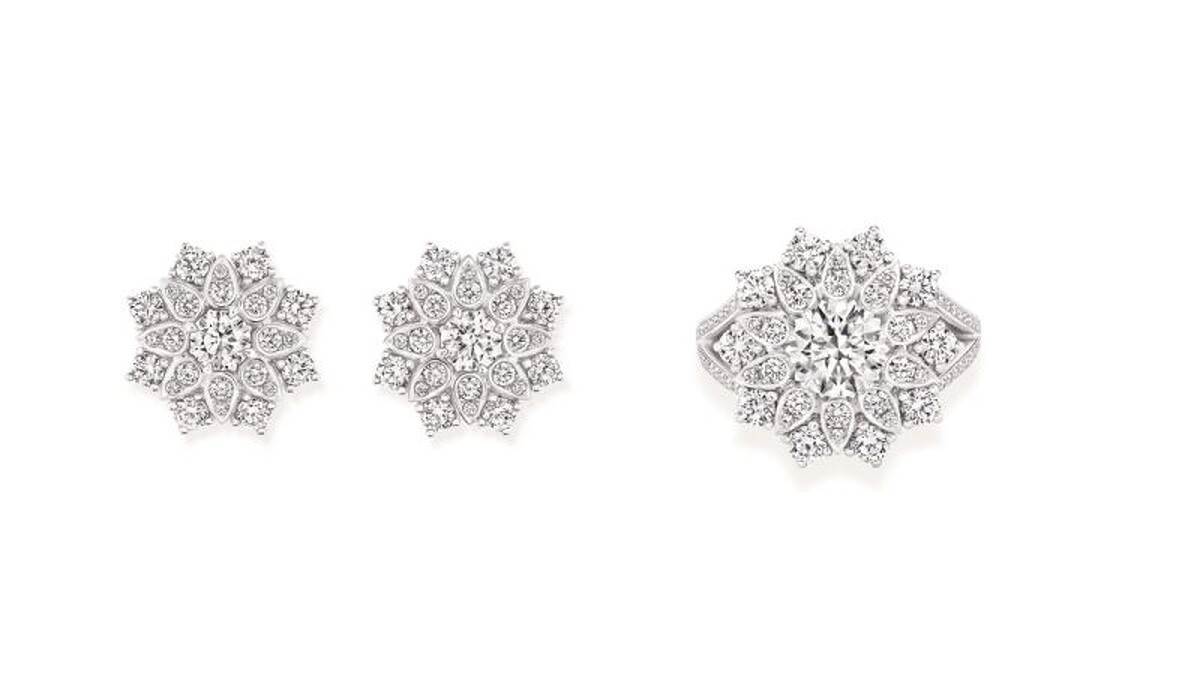 (圖左)海瑞溫斯頓Lotus Cluster鑽石耳環、(圖右)海瑞溫斯頓Lotus Cluster鑽石戒指