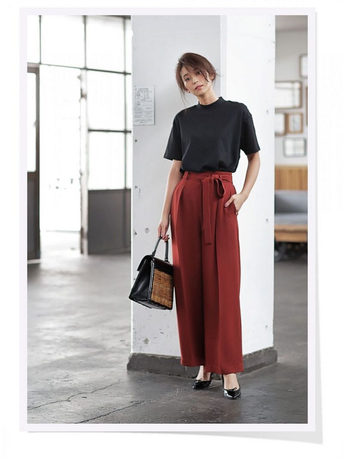 秋天最受喜愛的流行色非酒紅色莫屬,只要挑選酒紅單品,就能馬上打造具潮流感的造型!上衣可以搭配黑色寬版中高領T恤,創造出休閒優雅風,稍微改變一下,將蝴蝶結繫在側邊,就能創造出不同於上一套穿搭的帥氣風格。