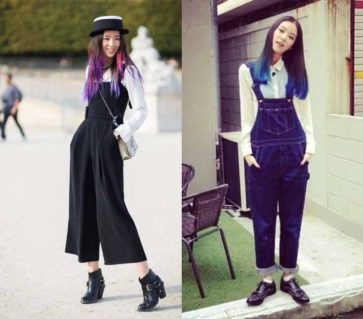 男孩感十足的連身褲在Irene Kim身上可俏皮也可正式,無論出門散步或參加時裝周,搭配上紡紗白色襯衫展現多樣風格。