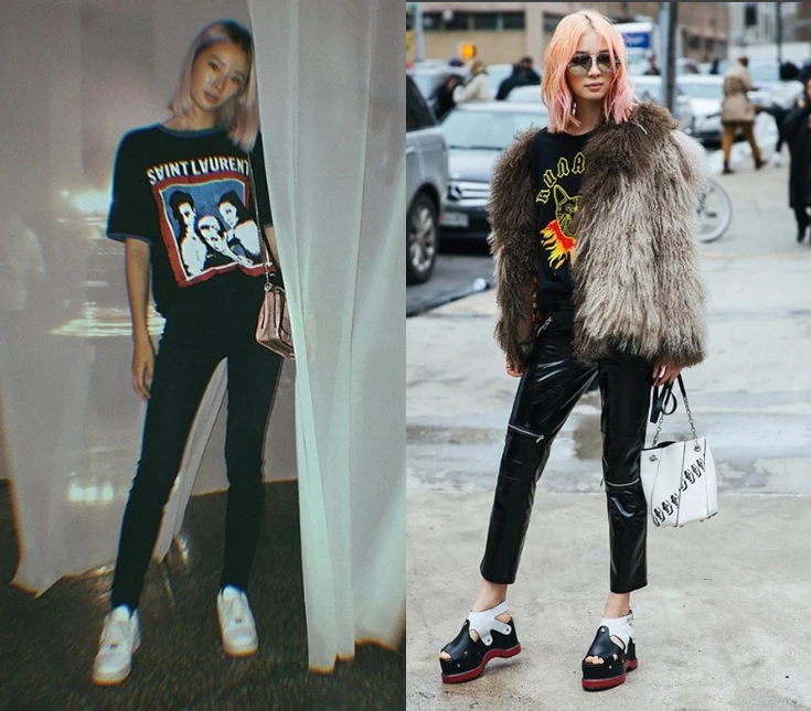 搖滾味十足的樂團Tshirt在近幾季絕對是不可或缺的單品之一,只要簡單的搭配上牛仔褲和球鞋,就能展現如Irene kim一樣的帥氣街頭氛圍。