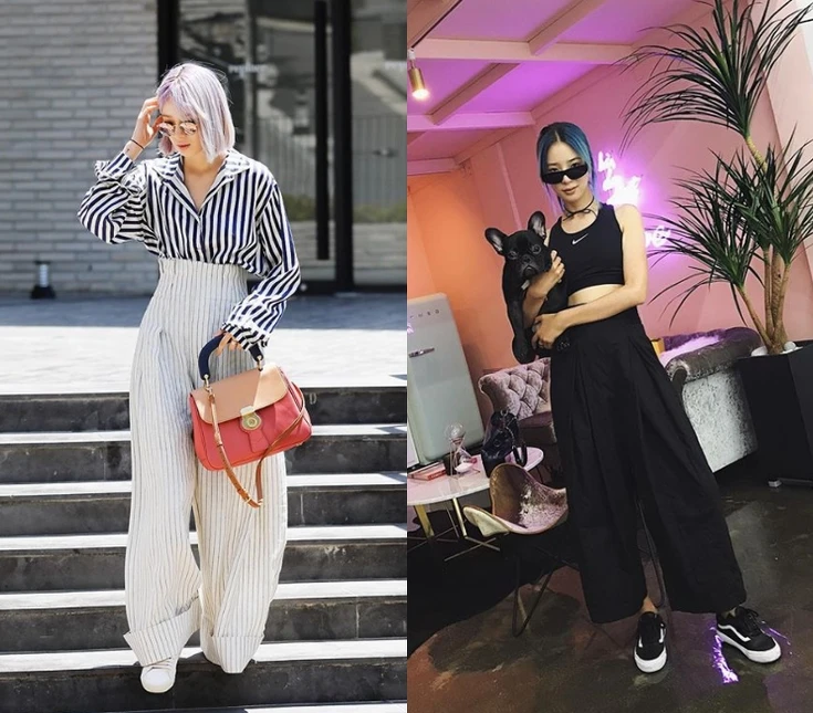 能帥氣能優雅,百搭的寬褲是本季必備。Irene Kim 搭配上運動款上衣展露街頭風格,或以淺色條紋展現優雅都非常適合。