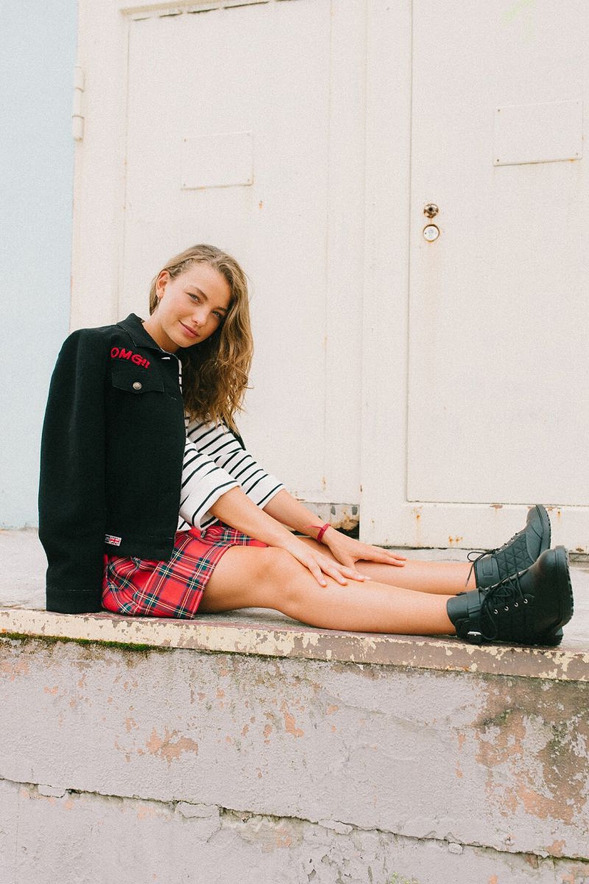 以條紋搭配格紋穿出圖騰X圖騰的巧妙混搭,完全無違和感的好看,當氣候更為颯爽涼快的時候,只要外罩俐落短版外套,就讓造型上更顯精緻出色。