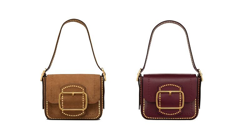 經典駝色、酒紅色是TORY BURCH今年秋冬的主色調,而這款全新設計的SAWYER鉚釘肩背包($27,900)是本季設計師的最愛之一,有麂皮或酒紅牛皮兩種材質,特大的皮帶扣表達復古摩登的風格,將女人味與個性風巧妙融合為一,與本季最夯的印花圖案、黑白刺繡洋裝或是一件簡單的白T與牛仔褲作搭配,都是無懈可擊地完美。