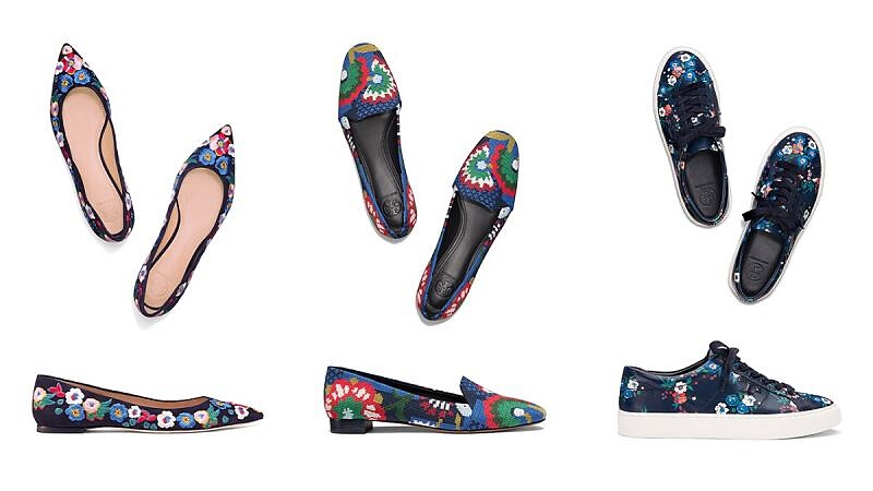 印花是永不退流行的時尚元素之一,TORY BURCH更在2017年秋冬鞋款系列套用鮮豔俏麗的三色堇印花,分別以刺繡、絨繡及印製的手法,呈現在最能營造悠然女人味的尖頭平底鞋、隨性搭配必備的樂福鞋,以及當紅的運動休閒鞋上。本季TORY BURCH將漂亮的美東戶外風格印花不僅用於服裝,更延伸至實穿的鞋款中。