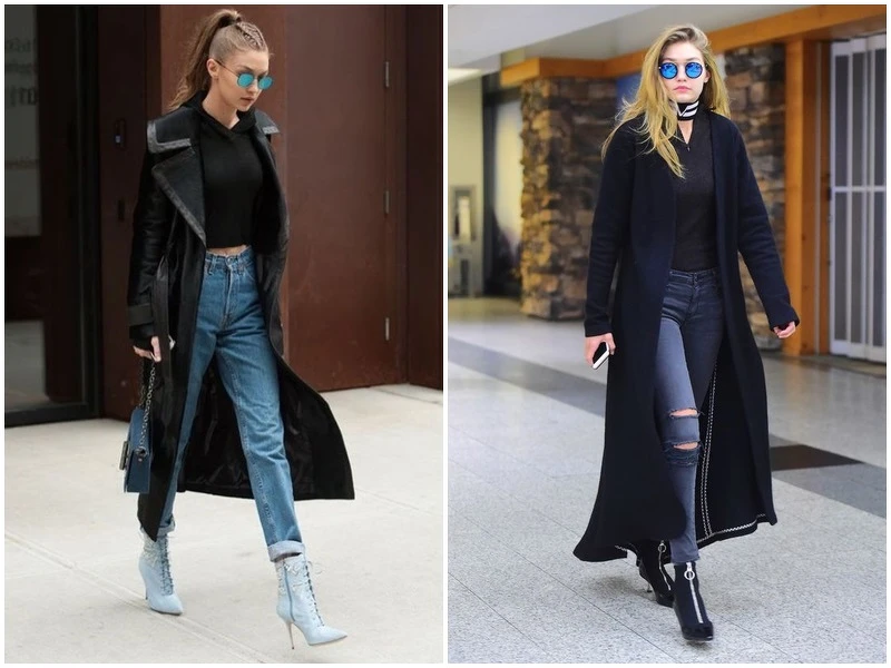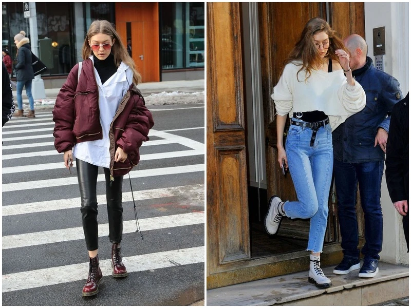 也是今年秋冬最火熱的單品,學Gigi Hadid用軍靴搭配上七分牛仔褲展現率性的一面。