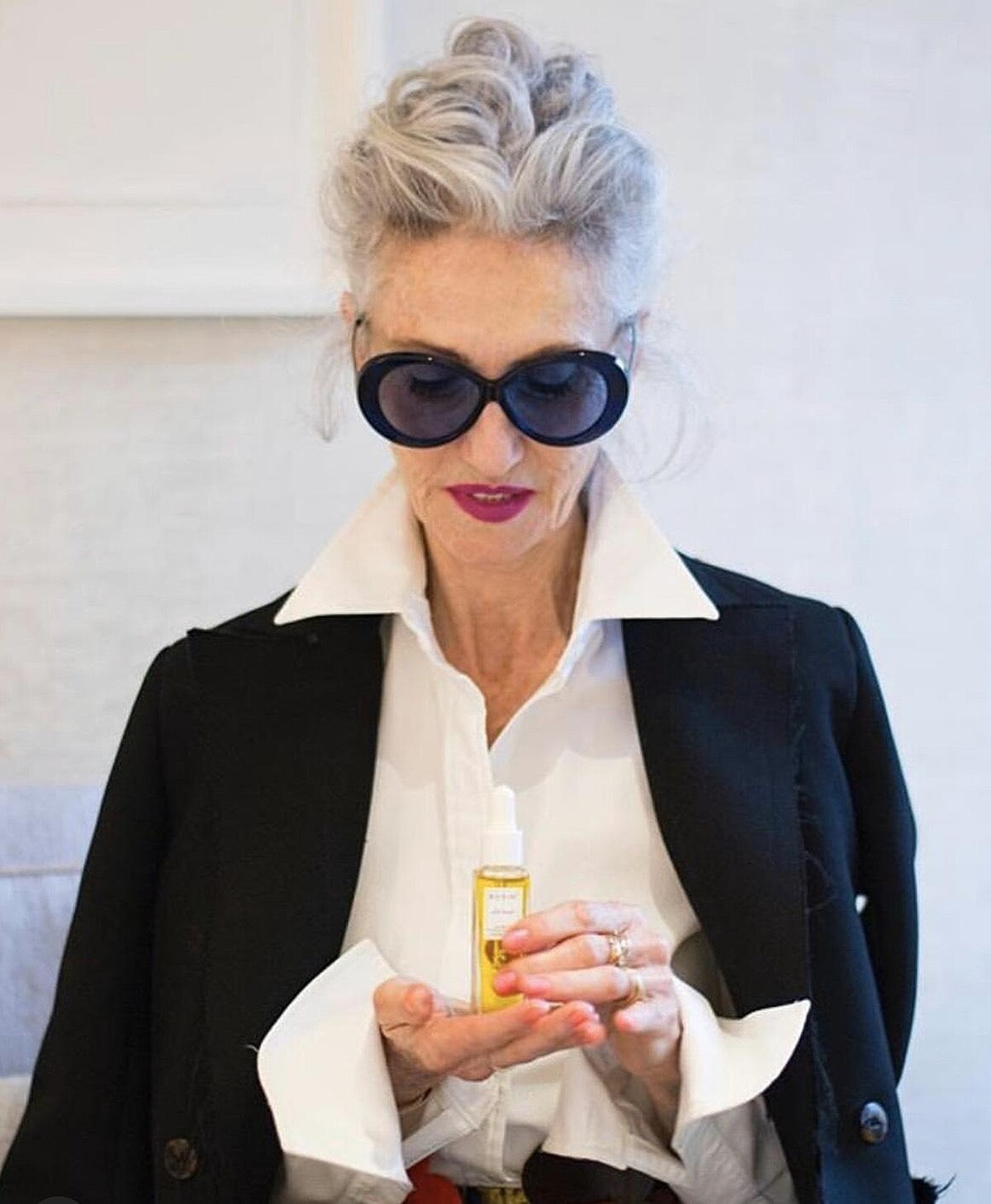 5、銀髮、紅唇和保養極好膚質
