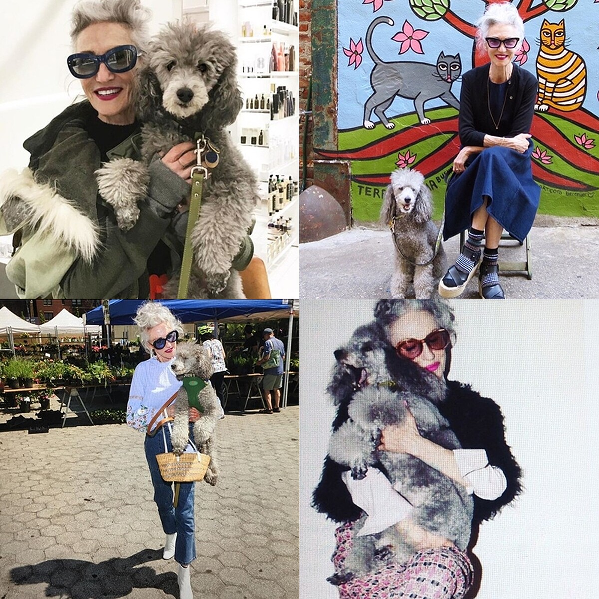 其實Linda Rodin最常搭配的是她可愛的貴賓狗Winky!髮色一樣的他們一起出門就超級時髦啦!她還甚至愛狗成痴創立了專賣狗牽繩品牌Linda and winks。