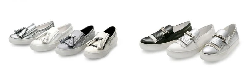 本季TOD’S繼續將都會運動風熱潮玩得淋漓盡致,源自小白鞋經典輪廓的休閒鞋款,除了兩大超模都追捧的「登山釘釦休閒鞋」,還推出以民族風圖騰與皮革流蘇為綴飾,以及加上TOD’S Double T金屬裝飾的鞋款…無論哪一雙,M編都發自內心地高喊:「每雙都時髦又好看,任何一雙我都覺得很可以~」