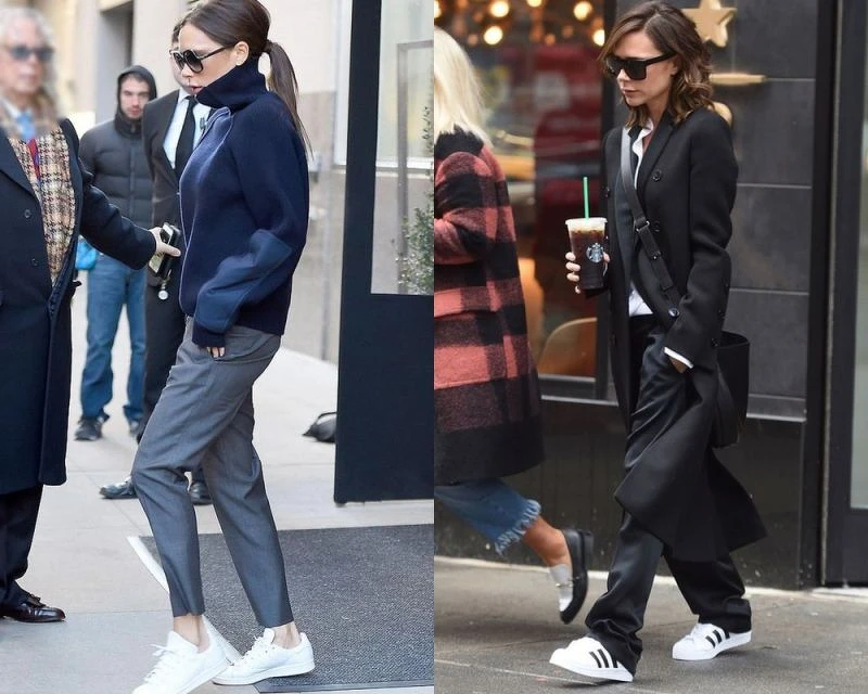 近幾年開始擁抱運動鞋的貝嫂常穿的是Adidas復古系列球鞋,配上中性風格的打扮時在帥氣度破表。