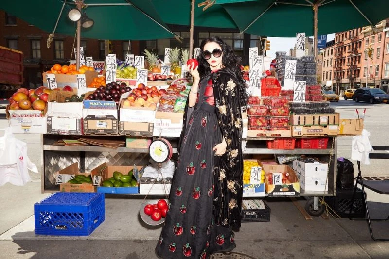 設計師Stacey Bendet穿上白雪公主與七個小矮人聯名系列服裝於紐約街頭