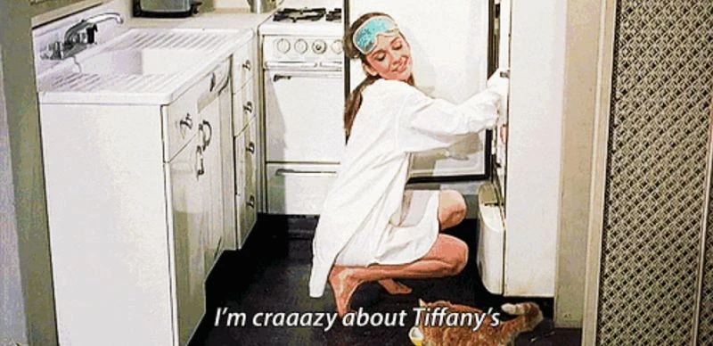 就像《蒂芙尼的早餐》裡,赫本每天清晨從出租車裡下來,嘴裡嚼著無趣的干糧,臉上卻在望向Tiffany & Co.店裡時投射出無限嚮往: