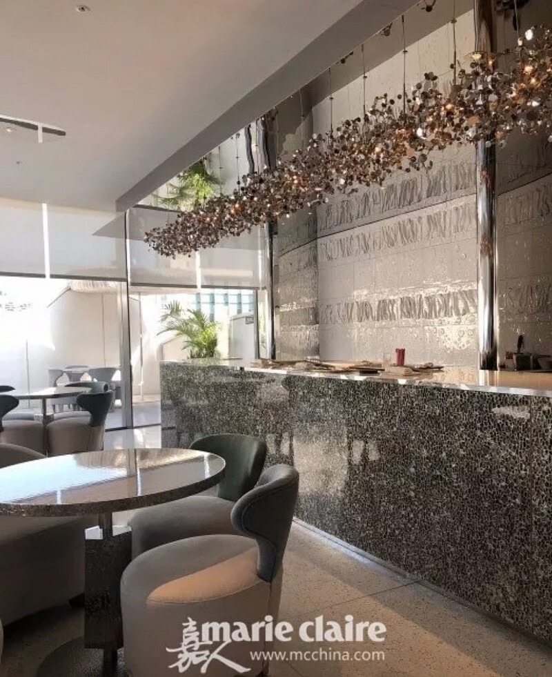 這個空間是由Dior粉和Dior金組成,牆面為大理石,整個風格簡潔明朗,富有線條感,和Dior包裝的設計理念不謀而合。
