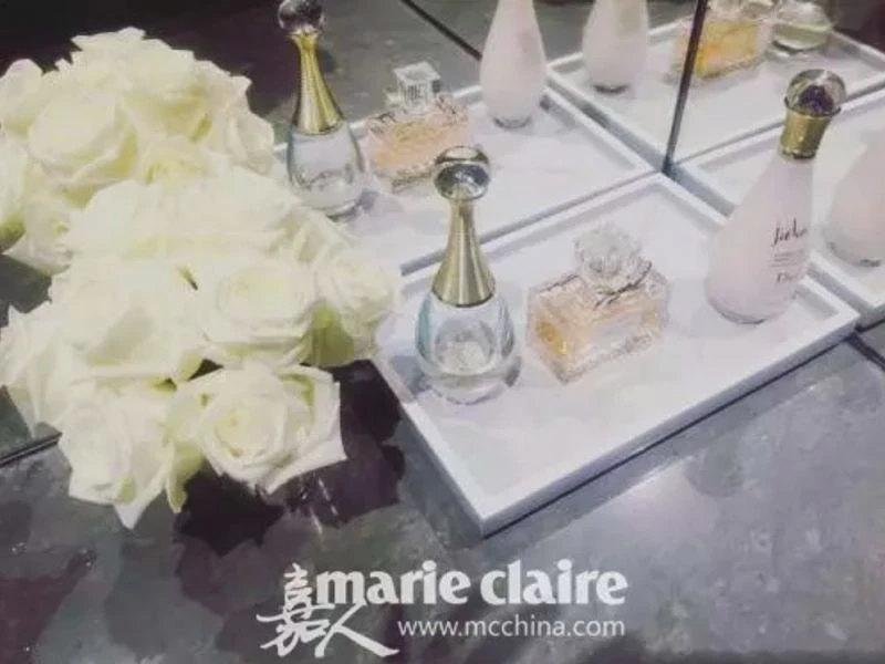 盥洗室的檯面設計也體現Dior精神。洗完手還可以用桌面上的Jadore真我香水乳液護膚,貴族一般的體驗。有Dior總是少不了玫瑰,玫瑰花香若隱若無,讓人無時無刻都會想起Dior先生熱愛的凡爾賽花園。