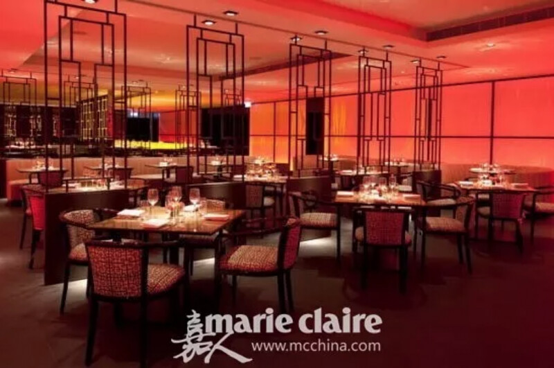 用餐區裡的設計也充滿了高貴神秘感,不管是高腳餐椅還是馬蹄形的卡座,都是Armani的黑紅色主旋律。嗯,這不就是嘉姐鍾愛的黑管嗎。