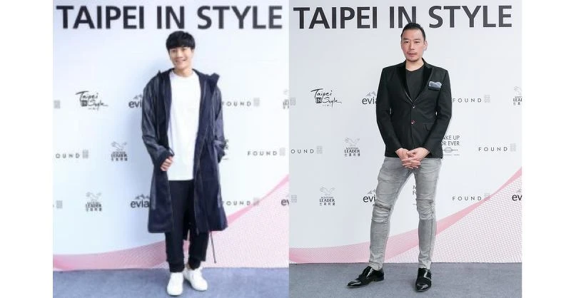 看秀嘉賓陽光帥氣藝人金在勳身穿品牌Tsung Yu Chan現身2017台北魅力展記者會;知名造型師陳科維也同樣現身於展場力挺