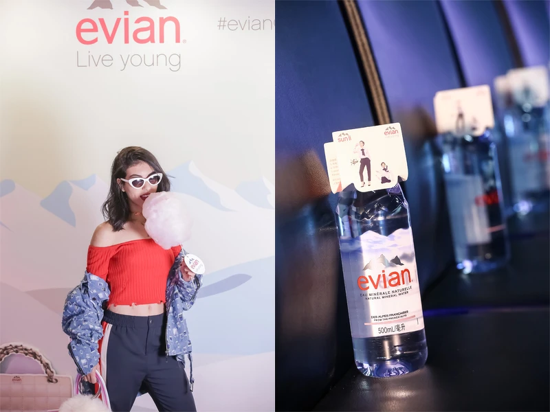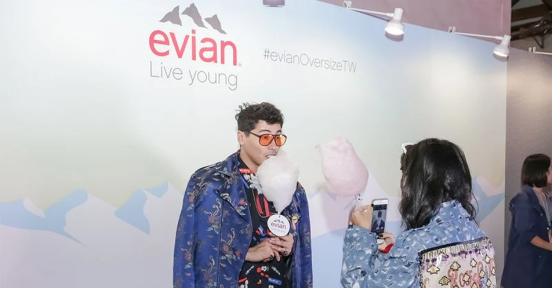 法國evian 依雲天然礦泉水更設置了打卡贈送棉花糖的攤位以及提供與會看秀嘉賓使用
