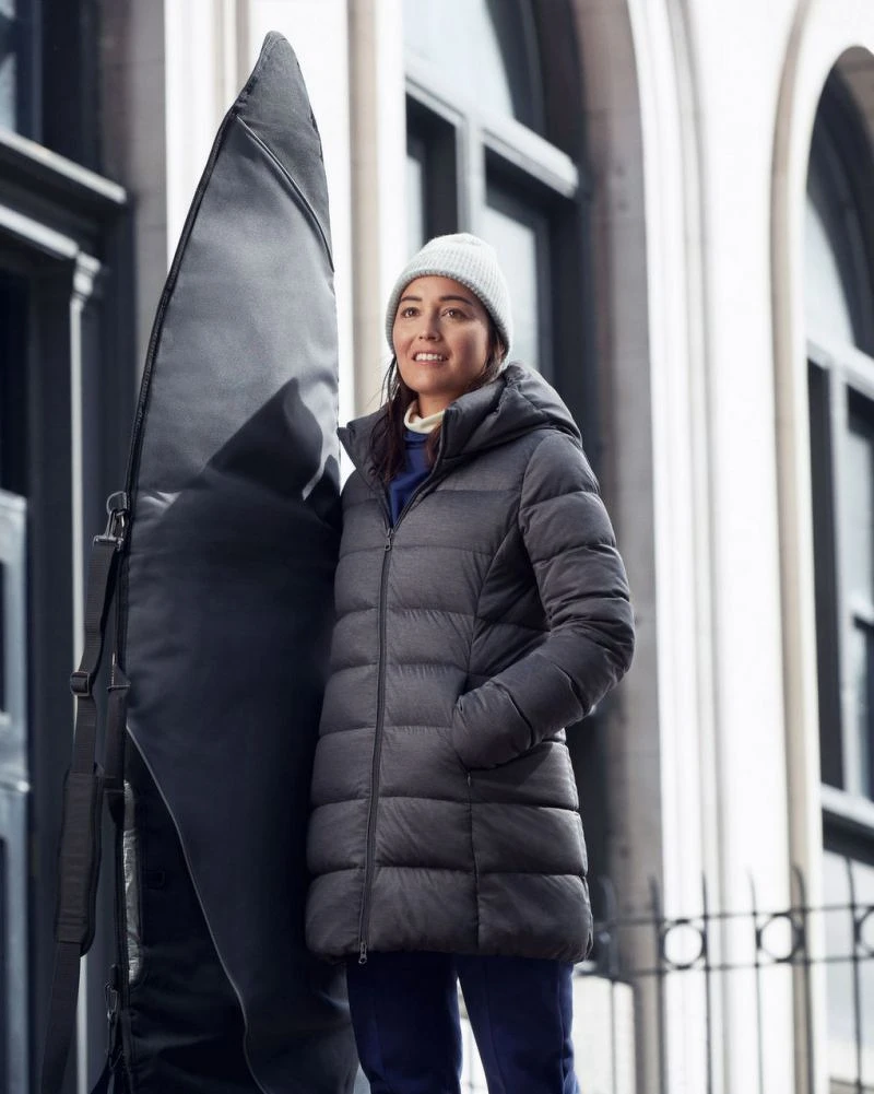 紐約的冬季很長,因此想要揮灑汗水,去運動是最棒的。Rachael在寒冷的冬天依舊保持衝浪運動,只要穿上UNIQLO彈性羽絨大衣,搭配休閒寬鬆的多層次穿搭,前往海邊的路上也能舒適保暖。