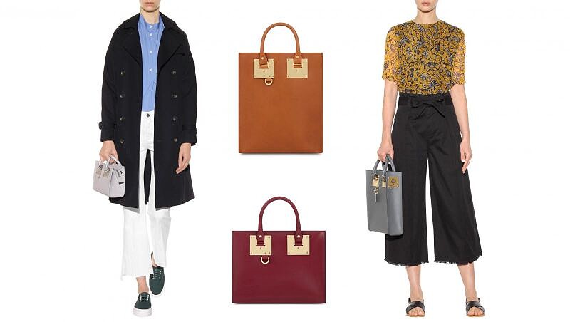 大家還記得早些年很流行的網紅級小眾手袋品牌Sophie Hulme嗎?當時基本上是每位走在潮流尖端的女生都擁有的手袋啊,當時出名的款式就是下面這個有兩個正方形鐵塊的皮革tote「Albion」,本來只是長方形版本,然後慢慢演變到小正方形款等。