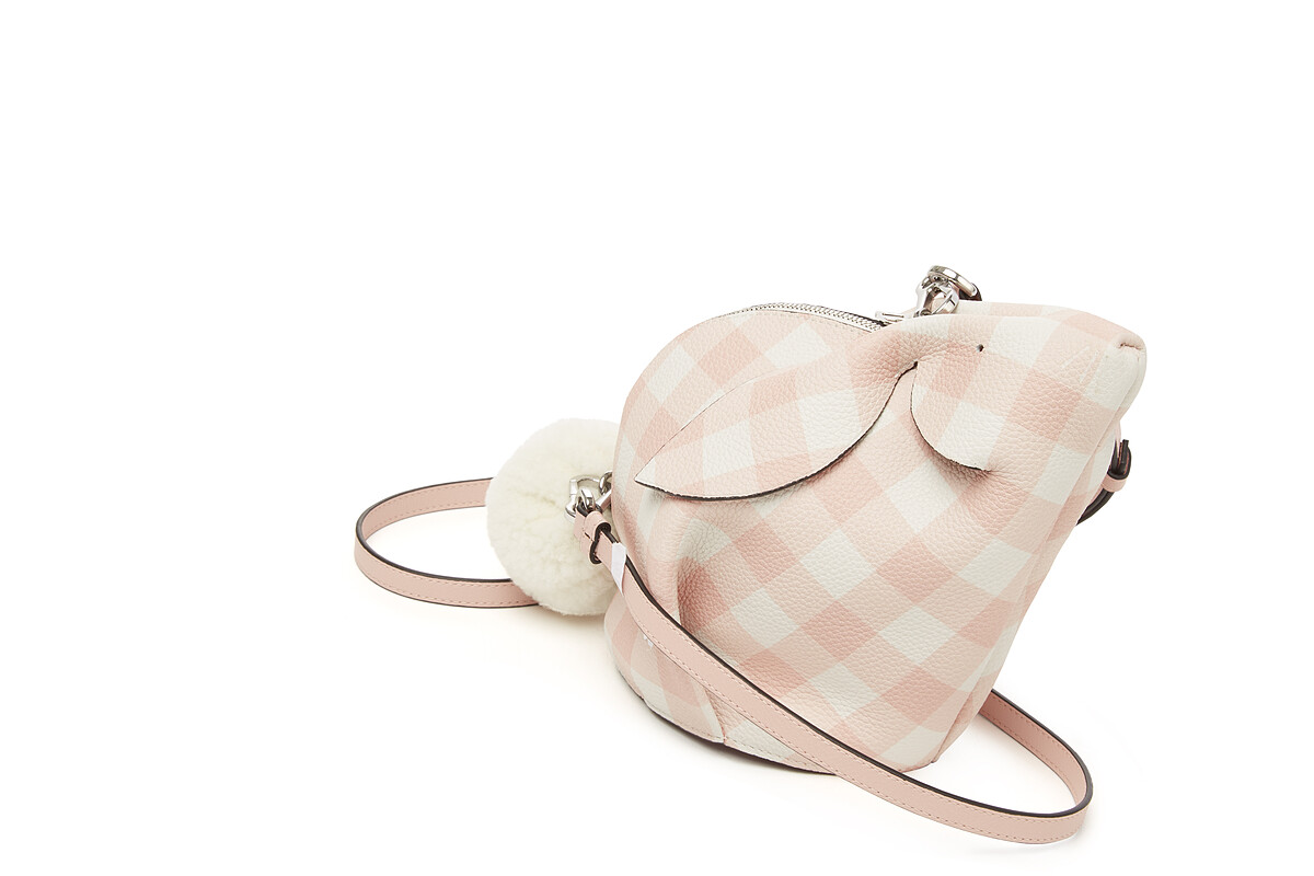 除了栩栩如生的翻羊毛白兔包外,更推出本季大熱的格紋皮革配色,包含粉橘色、淡藍色及粉紫色三種顏色選擇,兔子造型搭配粉嫩格紋元素及毛茸茸兔子尾巴,超萌魅力讓人很難不心動啊~
