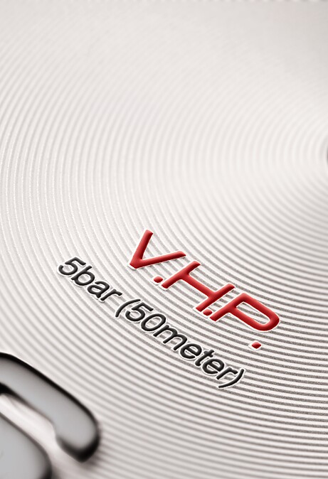 另外也推出多種面盤款式,包括優雅藍色、時尚銀色、率性黑色、以及獨特的深灰色碳纖維,隨場合穿搭出運動風、優雅內斂或時髦個性的造型,錶盤上以鮮明的紅色V.H.P. 字樣與環型刻度來創造獨特與活潑率性氣息,而超越一般精品石英錶款的創新低定價與超高性能的功能腕錶,也讓許多收藏錶迷為之瘋狂!
