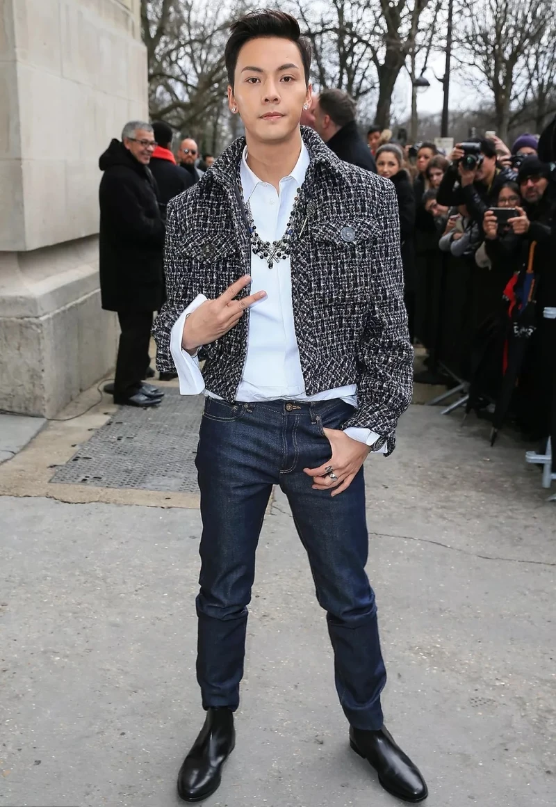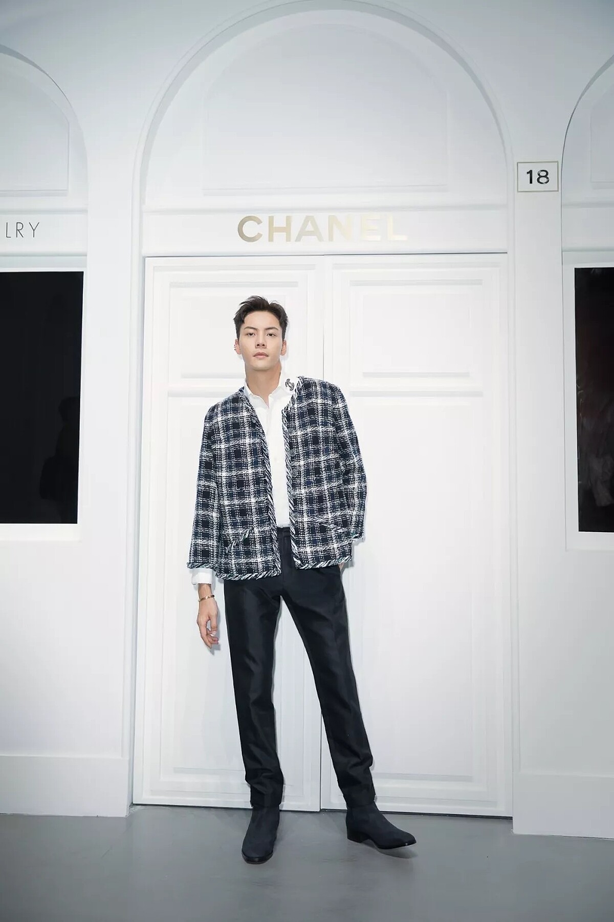 香奈兒2017/18秋冬高級成衣系列發佈,陳偉霆身穿斜紋軟呢外套,佩戴 J12黑色腕表及COCO CRUSH系列白18K金戒指,演繹紳士風味的法式時尚。