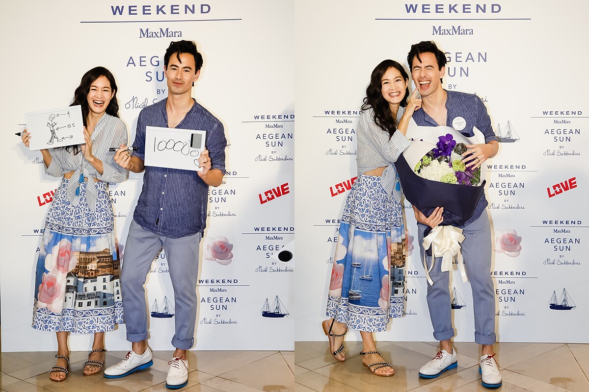 一向喜愛旅遊的Janet,特別與老公George一起出席WEEKEND Max Mara 2018春夏系列發表,換上一身充滿夏日度假氣息的流蘇短版襯衫搭配大圓裙,露出細細的小蠻腰與撐滿襯衫的上胸,狂被老公說現在身材好到不行!這回以愛琴海陽光精選系列(AEGEAN SUN)做為主題,藍色和白色花朵圖騰、帆船、小屋和紅色粗體「LOVE」字樣的希臘風情呈現在服裝上,把整個地中海的景象像畫作一般揮灑在服裝作品上,簡約又帶點藝術感的風格,完全適合立刻出發去度假!